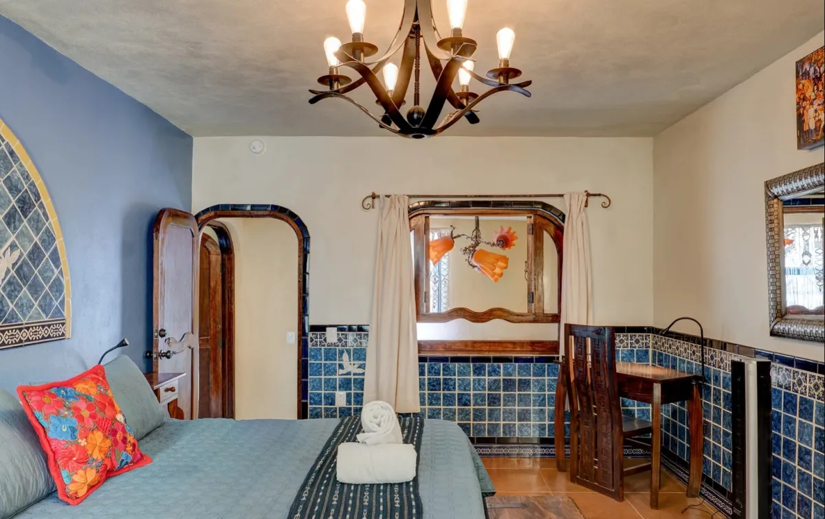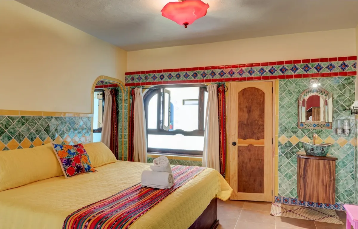 Casa de Colores comfortably accommodates up to 12 guests. The home features six uniquely designed bedrooms, each with a private bathroom, making it ideal for families, groups, retreats, or private gatherings.